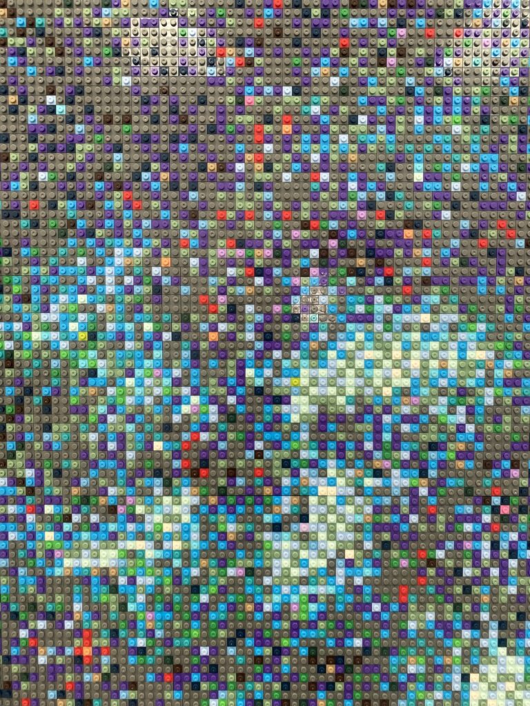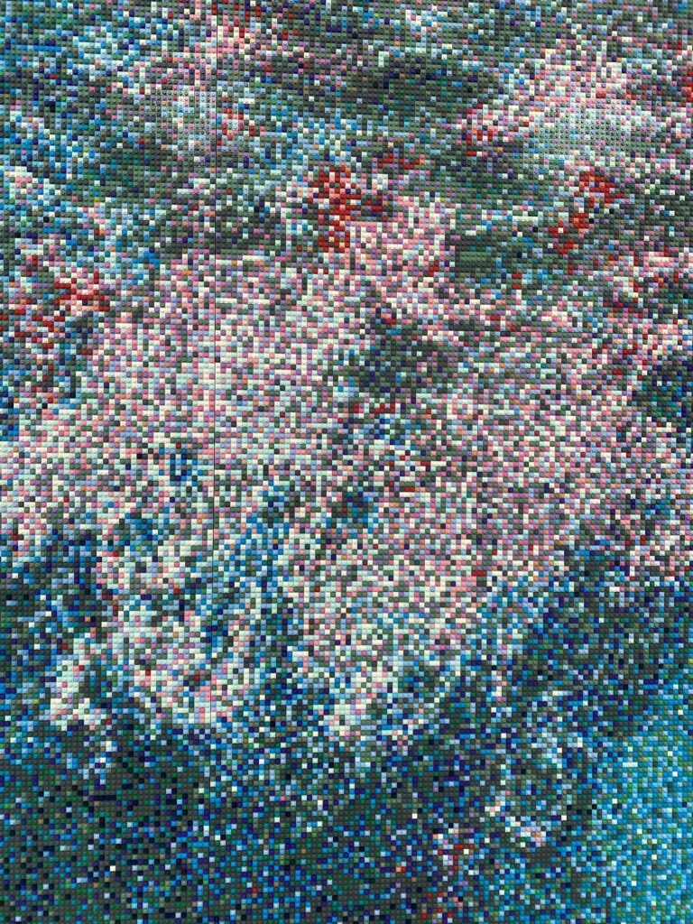 1. 장난감 블록으로 쌓아 올린 사회적 메시지 작가는 장난감 블록의 다채로운 사용을 통해 디지털 이미지의 ‘픽셀’과 고대 ‘타일 모자이크’의 전통을 동시에 떠올리게 합니다. 각각의 브릭은 독립적으로 존재하면서도 하나의 커다란 이미지를 완성하는데, 이는 사회 속 개인의 역할을 상징합니다. 이는 그의 이전 걸작인 《해바라기 씨(2010)》에서 탐구했던 주제이기도 합니다.